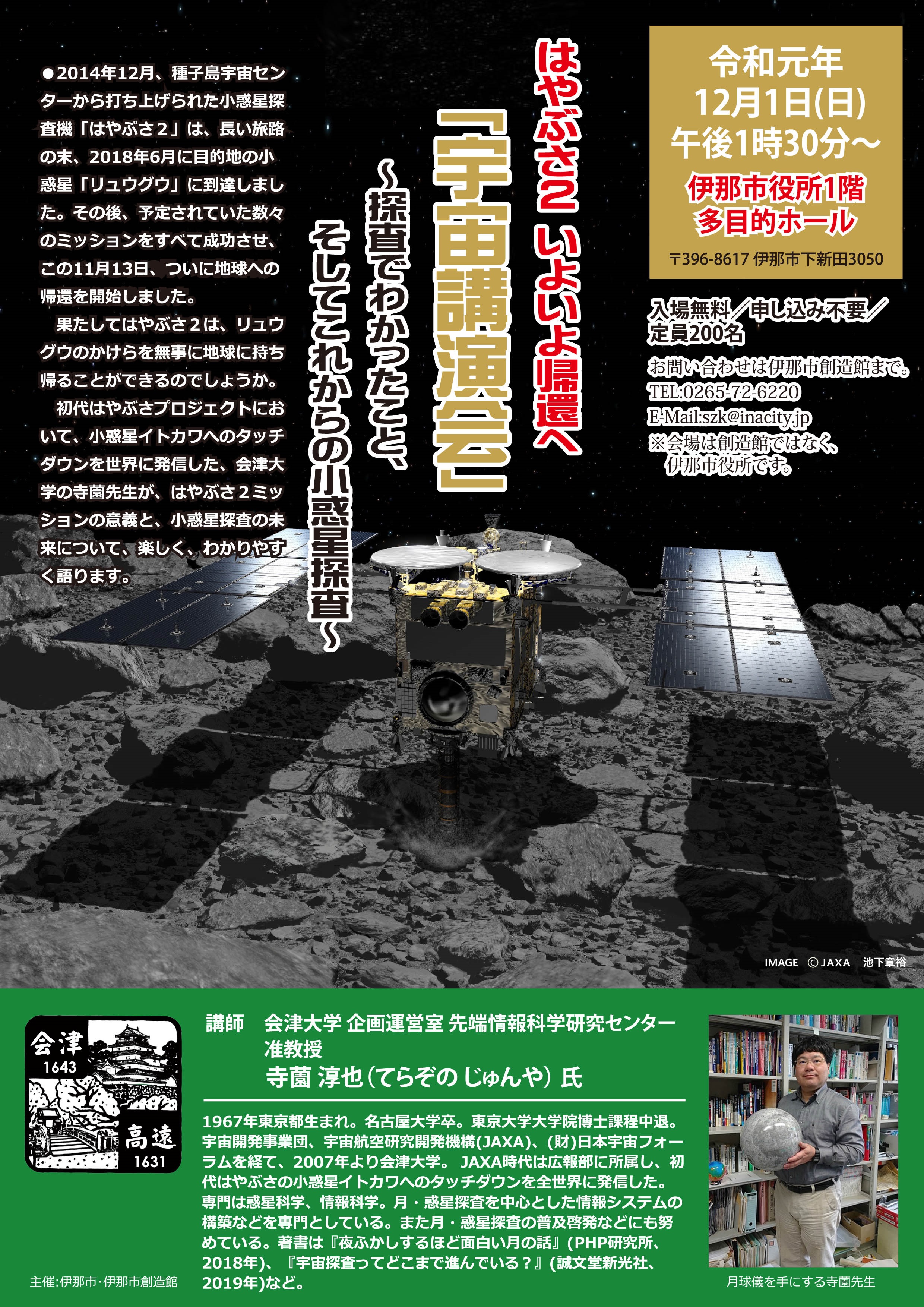 2019年12月分12月1日:宇宙講演会『「はやぶさ2」いよいよ帰還へ』
